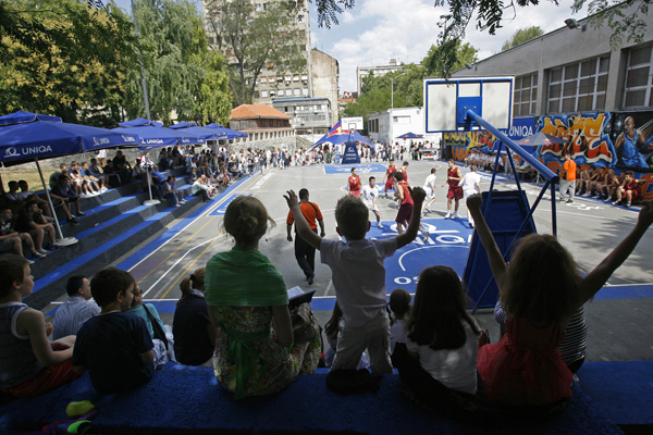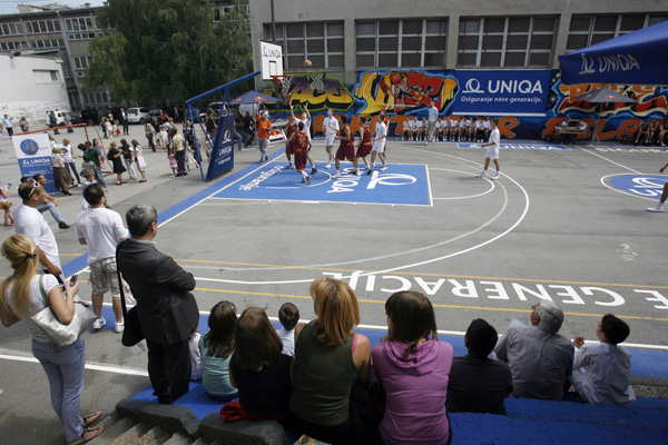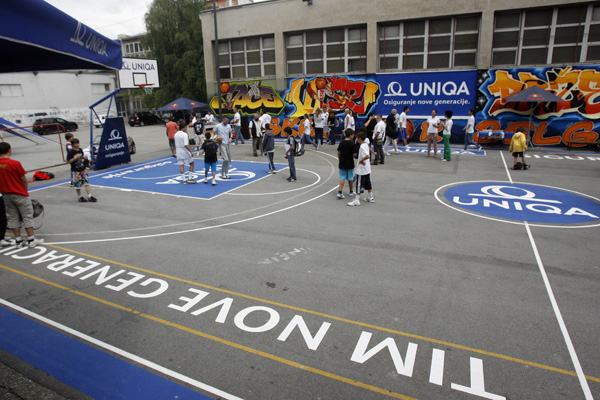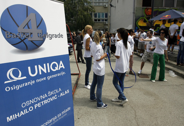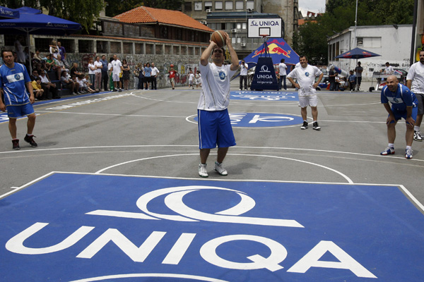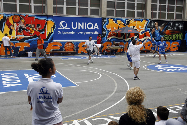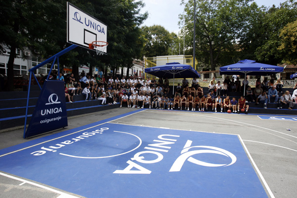Na inicijativu agencija Core Media i Vanguard, sa Uniqa osiguranjem realizovan je projekat Uniqa Basket 4 Belgrade. U saradnji sa Kancelarijom za mlade, Opštinom Stari grad i Gradom Beogradom obnoljen je košarkaški teren Osnovne škole Mihailo Petrović Alas na Dorćolu. Pored popularizacije sporta u školskom uzrastu u Beogradu, ova akcija imala je za cilj da promoviše životne vrednosti društva i aktivnu ulogu Uniqa Osiguranja u podršci lokalnoj zajednici, a sve u okviru akcije UNICEF – Škole bez nasilja.