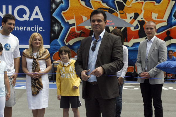 Nakon toga su direktor Uniqa osiguranja Zoran Višnjić , direktorka škole Mihailo Petrović Alas Vesna Nedeljković i ćerka našeg proslavljenog košarkaškog asa Aleksandra Đorđevića, Tesa Đorđević, uz asistenciju Kancelarije za mlade Koste Andrića svečano presekli vrpcu i zvanično otvorili košarkaške terene.