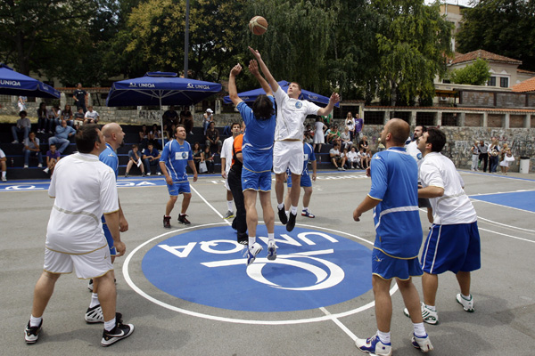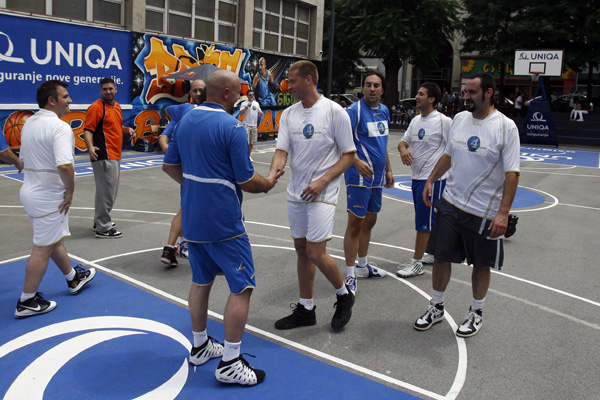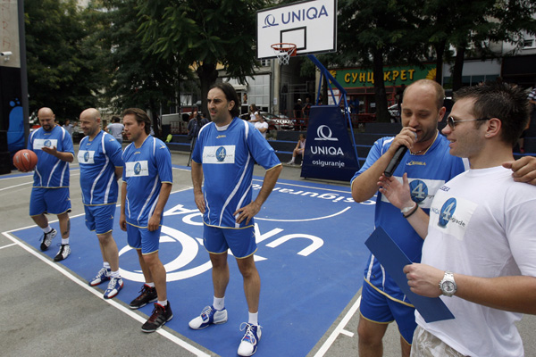 Akcija Uniqa Basket 4 Belgrade оkupila je poznate ličnosti i predstavnike medija koji su na kraju odigrali revijalni meč . Plavi tim pod nazivom River Plate koji su činili: Gru, Andrej Kulundžić, Luka Tešanović, Aleksandar Simić(Studio B) i Dragutin Stojimenović (Press) pobedili su beli tim tj. Lake pingvine sa 34:32. Za beli tim su igrali : Dejan Udovičić, Bane Lalić MVP, Marko Đurovski, Marko Maraquja i Luka Spasovski (Danas). Nagradu kao MVP revijalne utakmice dobio je Andrej Kulundžić.